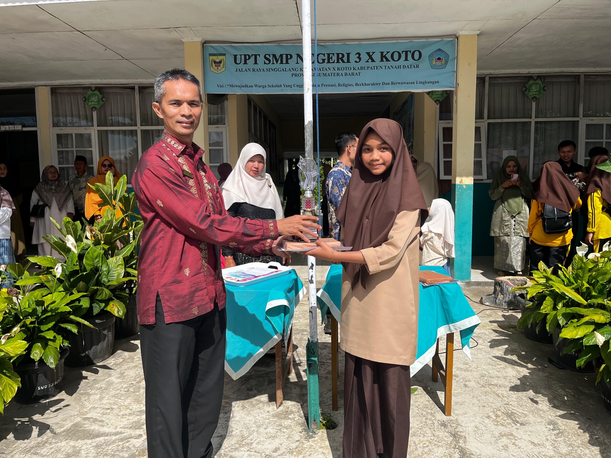 Singgalang – SMPN 3 X Koto melaksanakan penerimaan rapor semester genap tahun ajaran 2024/2025 dengan penuh semangat dan haru. Momen ini menjadi lebih istimewa karena salah satu siswi terbaik dari kelas 7.2, Nazwa Guccianna Putri, berhasil meraih predikat Juara Umum dengan nilai rata-rata mencengangkan, yaitu 90,00. Pencapaian ini menjadi bukti bahwa dedikasi, kerja keras, dan tekad yang kuat mampu membuahkan hasil luar biasa, bahkan sejak duduk di bangku kelas 7.